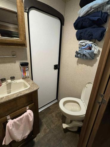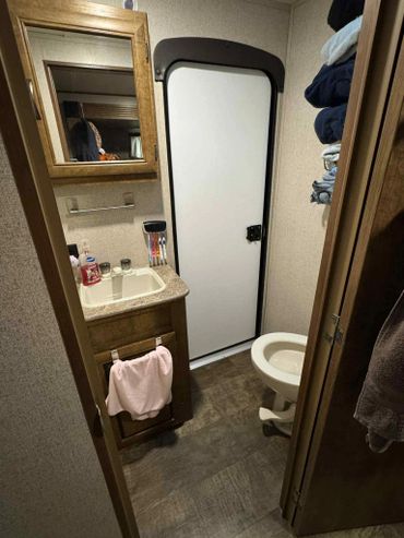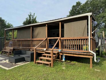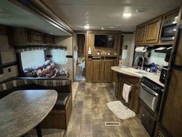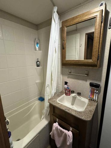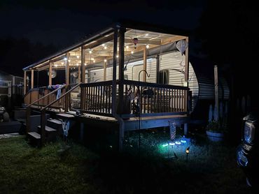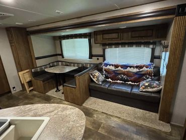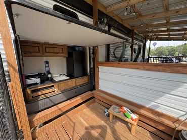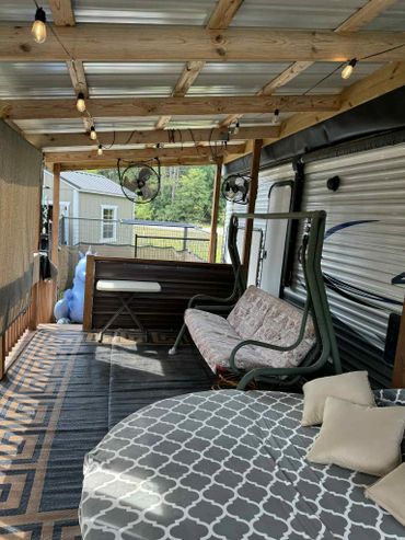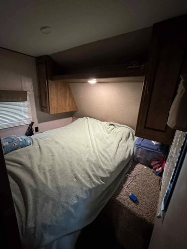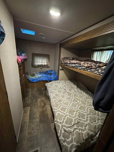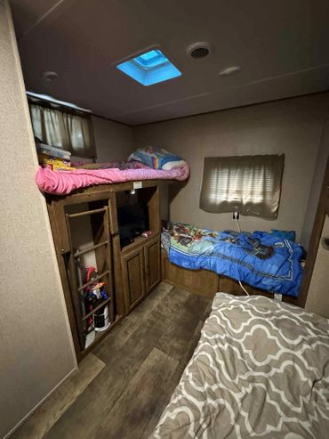 '17 Zinger Z-Series. 32' with Bunkhouse, Hard Awning, Deck, & Shed on Site A29. $21K. Site Fees not included.